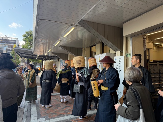 中央線青梅行きの車内には沢山のお侍いさんと虚無僧の一団が