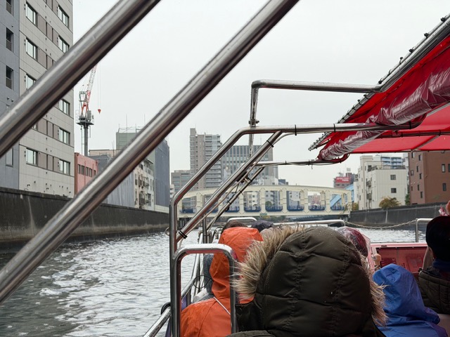 豊海橋 暑くもなく寒くもない天気でしたが、多少雨がパラついてきました 親切に乗船時に簡易カッパも戴けたのでGoooood!