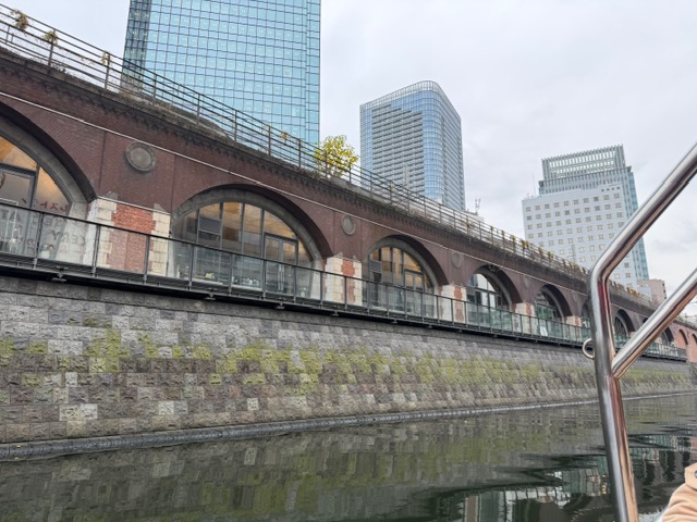 秋葉原和泉橋桟橋より乗船 旧万世橋駅を観ながら・・・ 私小中学校の頃は毎週のように電気パーツを買いに秋葉原に通って、ラジオ・ステレオ・テレビ等を作っていたので、、川面からの秋葉原は新鮮・・ひと味違う電気街を・・・