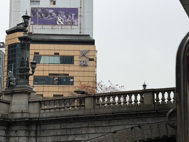 日本橋の下を、、、天松がみえます! 真上の首都高も取り壊して、晴れ晴れとした日本晴れ、日本橋になるということは、、、この川の下に首都高が・・・